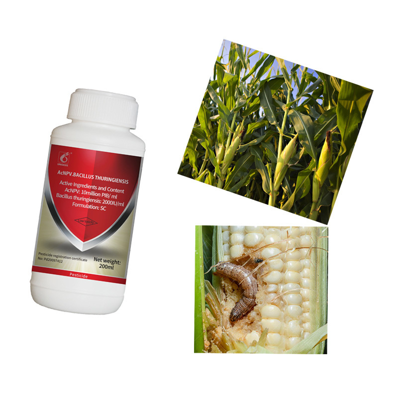 بعد إطعام الحشرات بالمبيدات الحشرية، تلعب باسيليس ثورينجينسيس دورًا أساسيًا في خلايا الأمعاء الوسطى للحشرات، مما يقلل من جهاز المناعة للحشرات، مما يسهل على الحشرات الإصابة بـ AcNPV.ثم يدخل AcNPV الجسم ويحمل نسخة كبيرة وتكاثر، وسرعان ما تنتشر بسرعة إلى كل جزء من جسم الآفات. ستفقد الآفات قدرتها على إلحاق الضرر بالمحاصيل.الـ AcNPV تستمر في إصابة الآفات السليمة والجيل التالي من خلال سوائل الجسم والبراز من الحشرات الميتة، تماما مثل الطاعون الدودة، بهذه الطريقة، وسوف تتحكم في الآفات في وقت طويل.