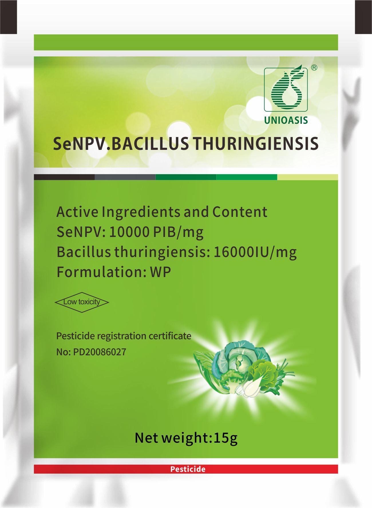 | محتوى المكون النشط | 10000 PIB/mg SeNPV+16000IU/mg Bt |